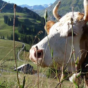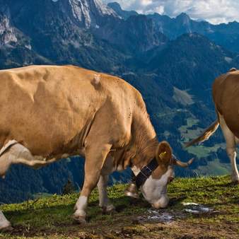 Mit viel Auslauf auf der Weide oder in traditioneller Mutterkuhhaltung wachsen viele Simmentaler besonders naturnah auf. Viele Tiere werden im Mai auf die Voralp geführt und im Sommer auf die Alp. Dort finden die Simmentaler, was für die gute Qualität von Milch und Fleisch besonders wichtig ist: das beste Gras und die feinsten Kräuter.